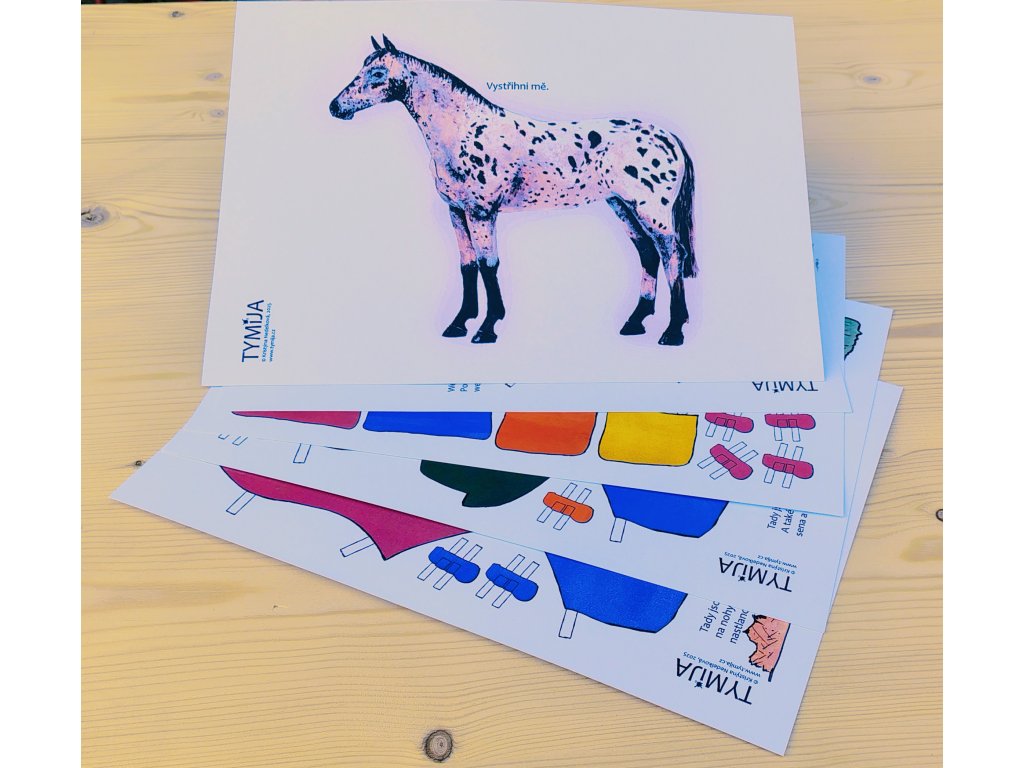 Ve vystřihovánkách Tymija je také úvodní text, kde najdete tip k dalšímu tvoření s koníkem. Vybavení je barevné, rozvíjející fantazii a tvořivost. Autorka se držela reálného vybavení pro koníky a ztvárnila vše tak, jak víceméně ve skutečnosti je. Jen je to menší a z papíru :).