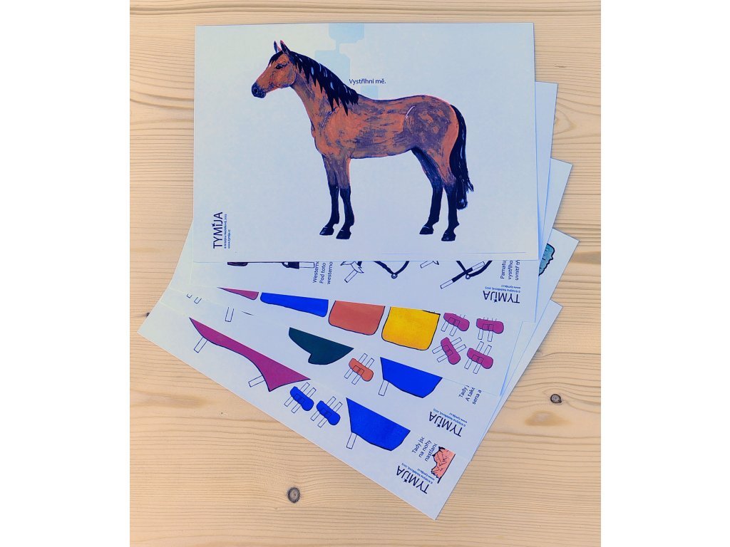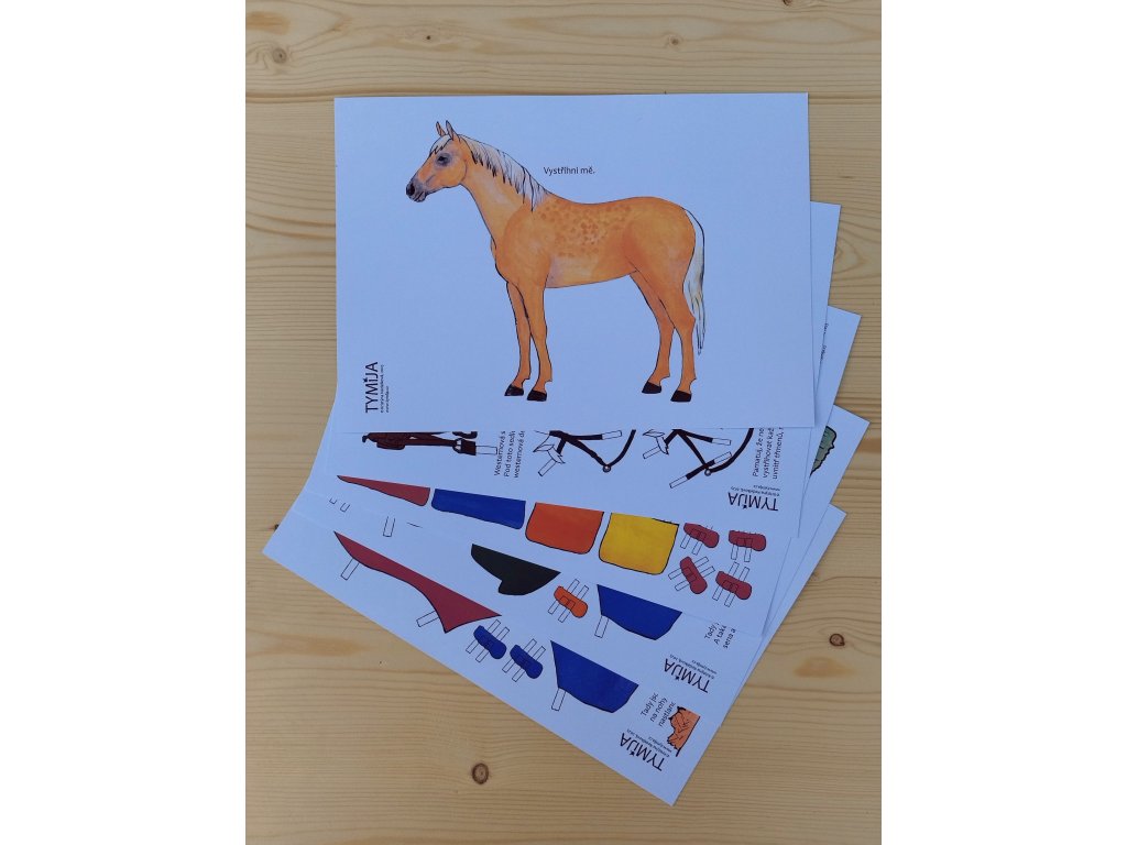 Ve vystřihovánkách Tymija je také úvodní text, kde najdete tip k dalšímu tvoření s koníkem. Vybavení je barevné, rozvíjející fantazii a tvořivost. Autorka se držela reálného vybavení pro koníky a ztvárnila vše tak, jak víceméně ve skutečnosti je. Jen je to menší a z papíru :).