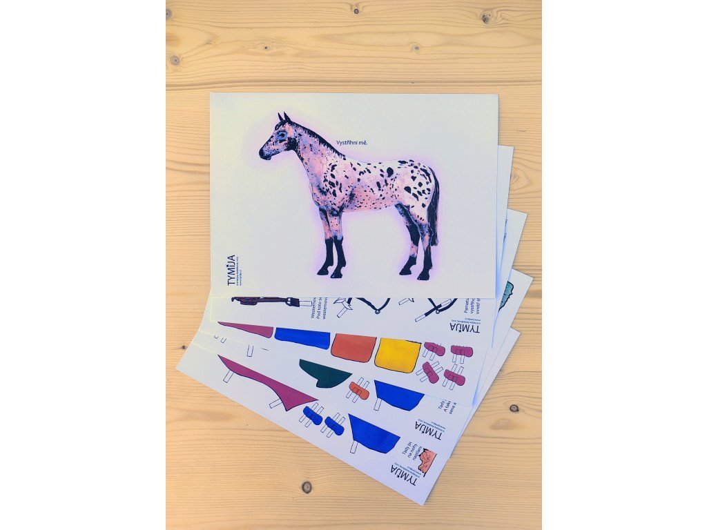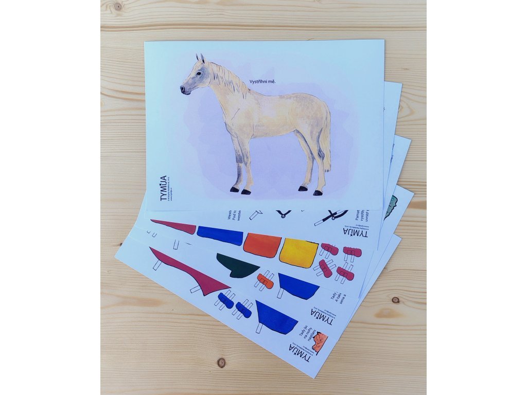 Oblékací koník z papíru k vystřižení spolu s jeho vybavením. Tato vystřihovánka je vhodná pro kohokoliv, kdo je ve vystřihování již zkušený a má svou jemnou motoriku plně ve svých rukách. Vystřihovánky obsahují 1 koníka na A4 k vystřižení a 5 stránek A4 tvrdšího papíru, kde je vybavení pro koníka a pár předmětů, které se užívají běžně ve stáji, také k vystřižení. U vystřihovánek je přiložený zipový sáček, který může sloužit k uchování již vystřižených věcí a koníka.